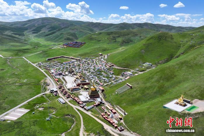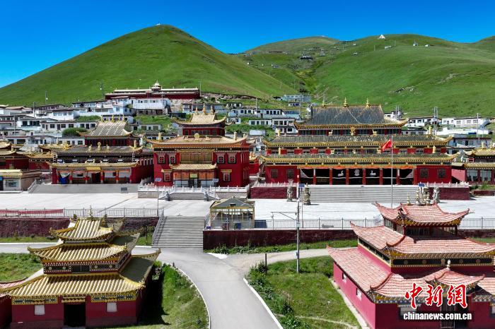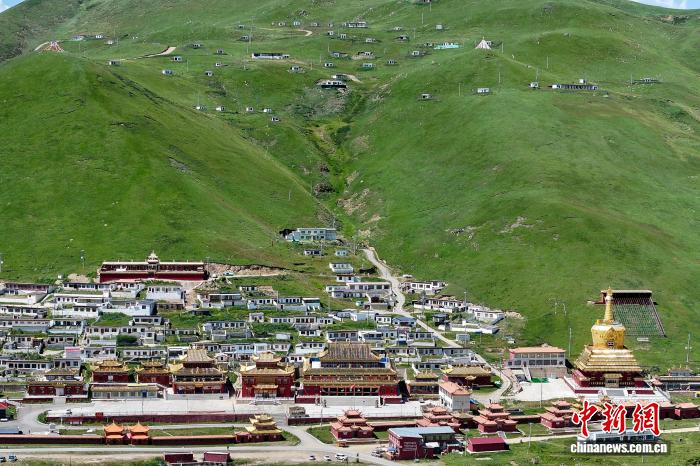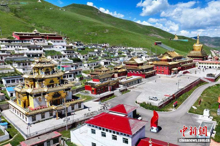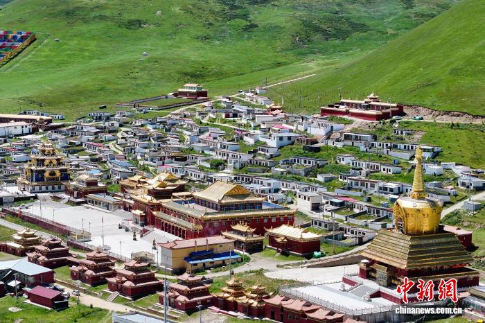 8月16日,航拍位于青海省果洛躲族自制州达日县境内乱的查朗寺。查朗寺天处果洛州主旨天带的达日县扶植城,是达日县境内乱领域战作用最年夜的庙宇,于1895年创寺,属躲传释教宁玛派。中新社记者 薛蒂 摄