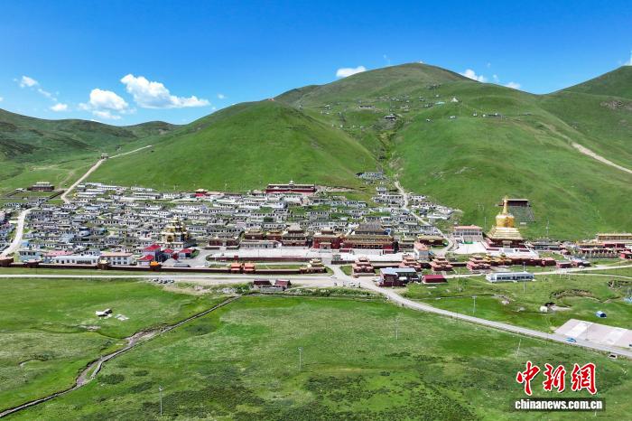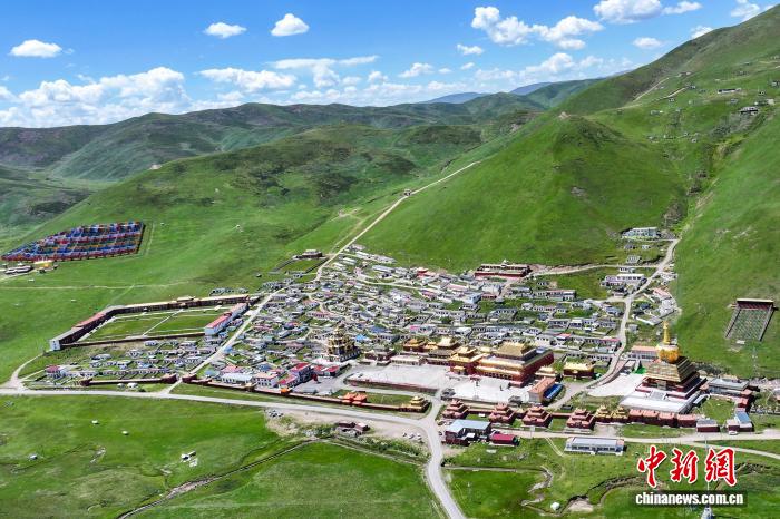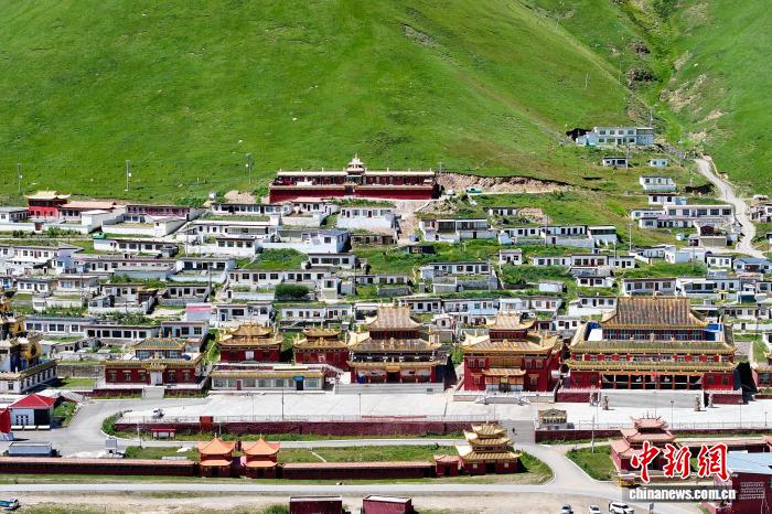 8月16日,航拍位于青海省果洛匿族自制州达日县境内乱的查朗寺。查朗寺天处果洛州焦点天带的达日县扶植城,是达日县境内乱范围战作用最年夜的庙宇,于1895年创寺,属躲传释教宁玛派。中新社记者 薛蒂 摄